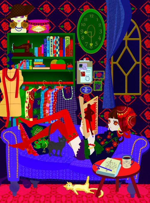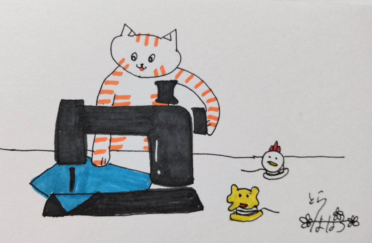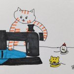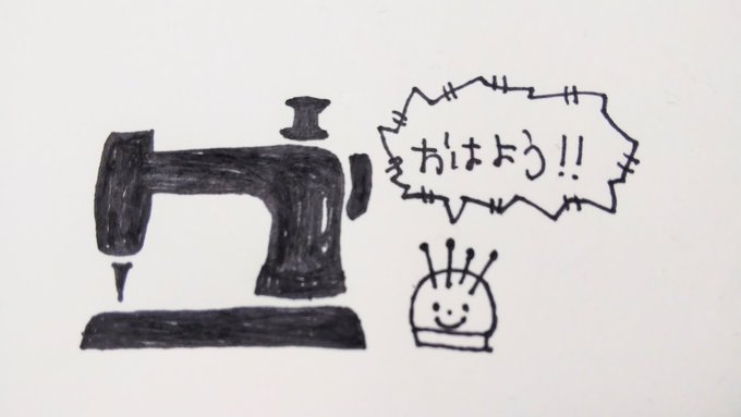 おはようございます!! #ミシンの日 ことら、ミシンをカタカタ!! ボビン、コロコロ!! 今日も素適な土曜日を〜🤗 #絵描きさんと繋がりたい #みんなで楽しむTwitter展覧会 #イラスト #油性ペン #マッキー画