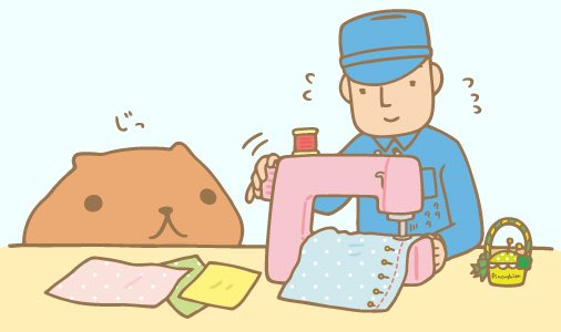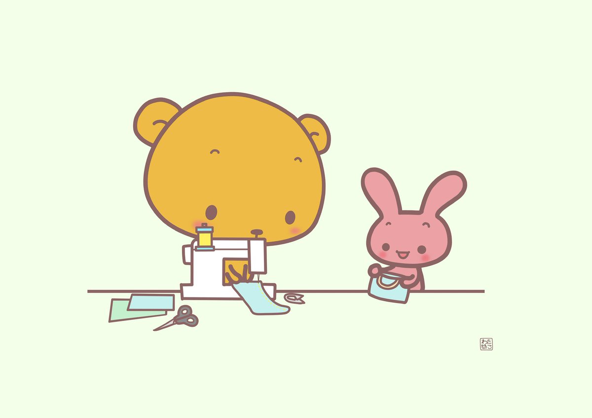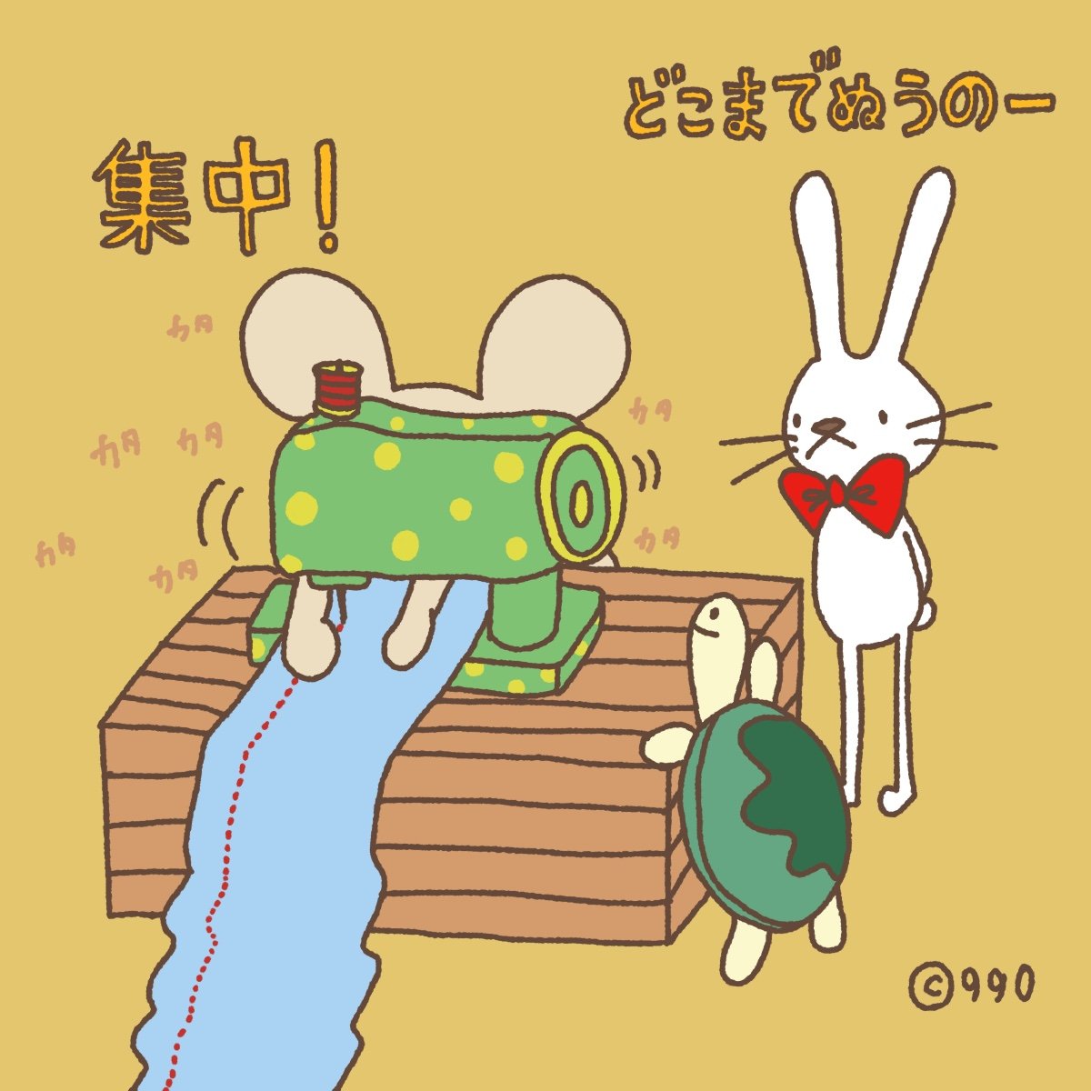 チクチクモクモクと縫い続ける〜🧵 #ミシンの日 #きんようび #ククまる #ククまるの日常 #イラスト #イラスト好き #絵描きさんと繋がりたい #イラスト好きと繋がりたい #illust #illustration #くま #うさぎ #かめ