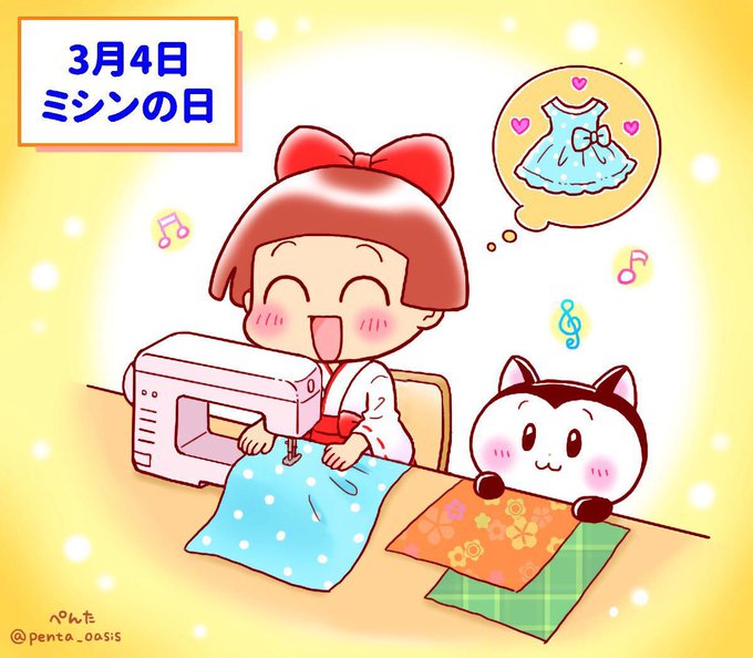 おはようございます😊 今日はミシンの日🧵 蛇の目でおつかい嬉しいって 能力者か!?と中二病全開だったすんこです🤣 恥ずかしい😅 今日も一日よろしくお願いします✨ #イラスト #ミシンの日 #絵描きさんと繋がりたい