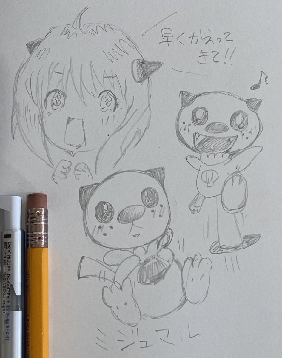 #にぎりめししか勝たん #イラスト #ラフ画 #絵描きさんと繋がりたい #推しに会いたい #朝10分で描く落書き #ミジュマル #落書き #ポケモン #アーニャ 北海道に推しがいない連休②。いつでもどこでも頑張ってるまいぴを応援したい。 ミジュマルと待ってる。