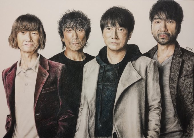 本日はリクエストイラスト第三弾です。 Yoshikoさんからのリクエスト! Mr.Childrenの皆さんです。 随分時間がかかりましたが、全員集合です! 30周年!!おめでとうございます! リクエストありがとうございましたー!! #mrchildren #ミスチル #半世紀へのエントランス #リクエストイラスト