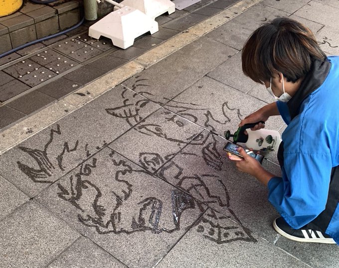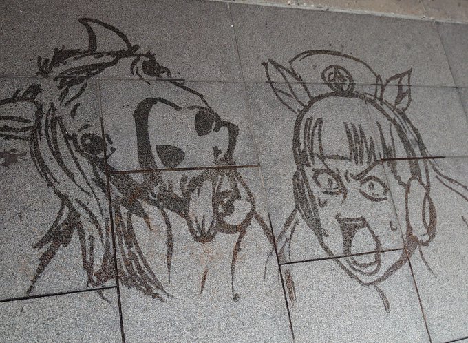 地面に水で描いたネオユニヴァースとナリタトップロード(動画)です。 #ウマ娘 #ウマ娘プリティーダービー #ネオユニヴァース #ナリタトップロード #ミストアート twitter.com/i/web/status/1…
