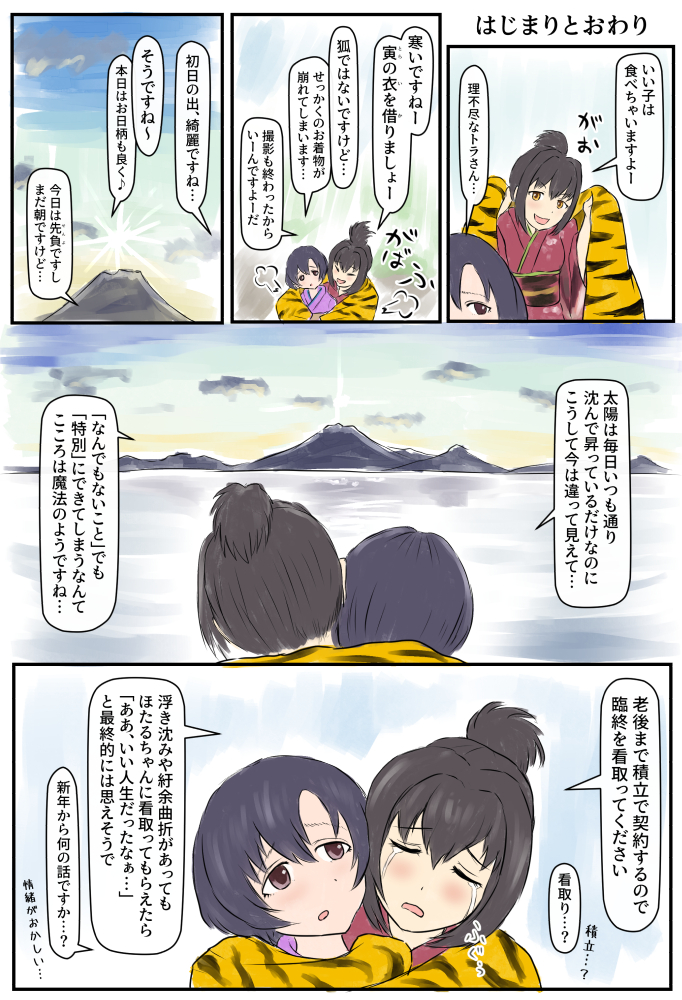 『はじまりとおわり』 虎富士茄子さんと看取り菊ほたる。 pixiv.net/artworks/95221… #アイドルマスターシンデレラガールズ #鷹富士茄子 #白菊ほたる #ミス・フォーチュン