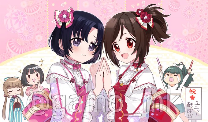 あけましておめでとう!茄子さん、歌鈴さん誕生日おめでとう! #鷹富士茄子 #道明寺歌鈴 #依田芳乃 #藤居朋 #白菊ほたる #ミス・フォーチュン・テリング #鷹富士茄子生誕祭2022 #道明寺歌鈴生誕祭2022