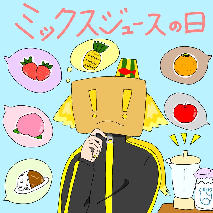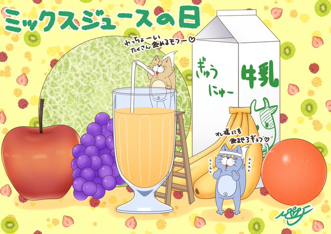 記念日イラスト111枚目 本日3月9日は #ミックスジュースの日 不思議ですよね~、色んなフルーツが入ってるのにケンカしないで美味しいジュースになるんですもん…( ºΔº )💭 #bintrollFA