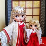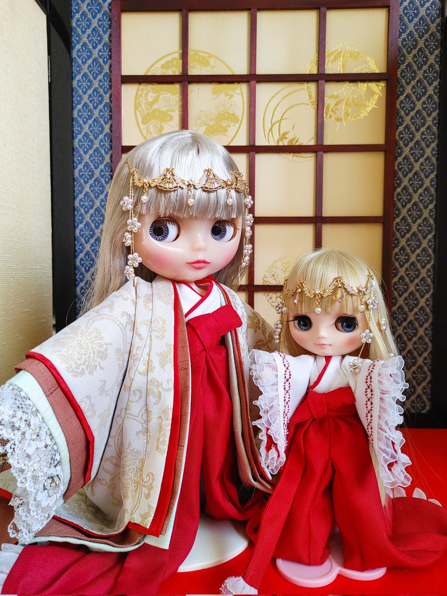 #ミディブライス 可愛いなぁ🥰💓 巫女服ドレス minne.com/items/17142312 ※巫女服は各ショップで販売中💡(プロフから) ※パールフラワーのヘッドドレスは近日販売予定 #羊毛ちくちくheartleaf #ドールオーナーさんと繋がりたい #ドール巫女服 #ドール着物 #ミディブライスアウトフィット