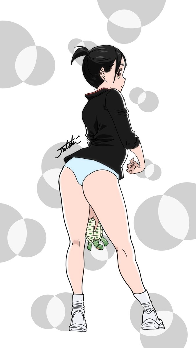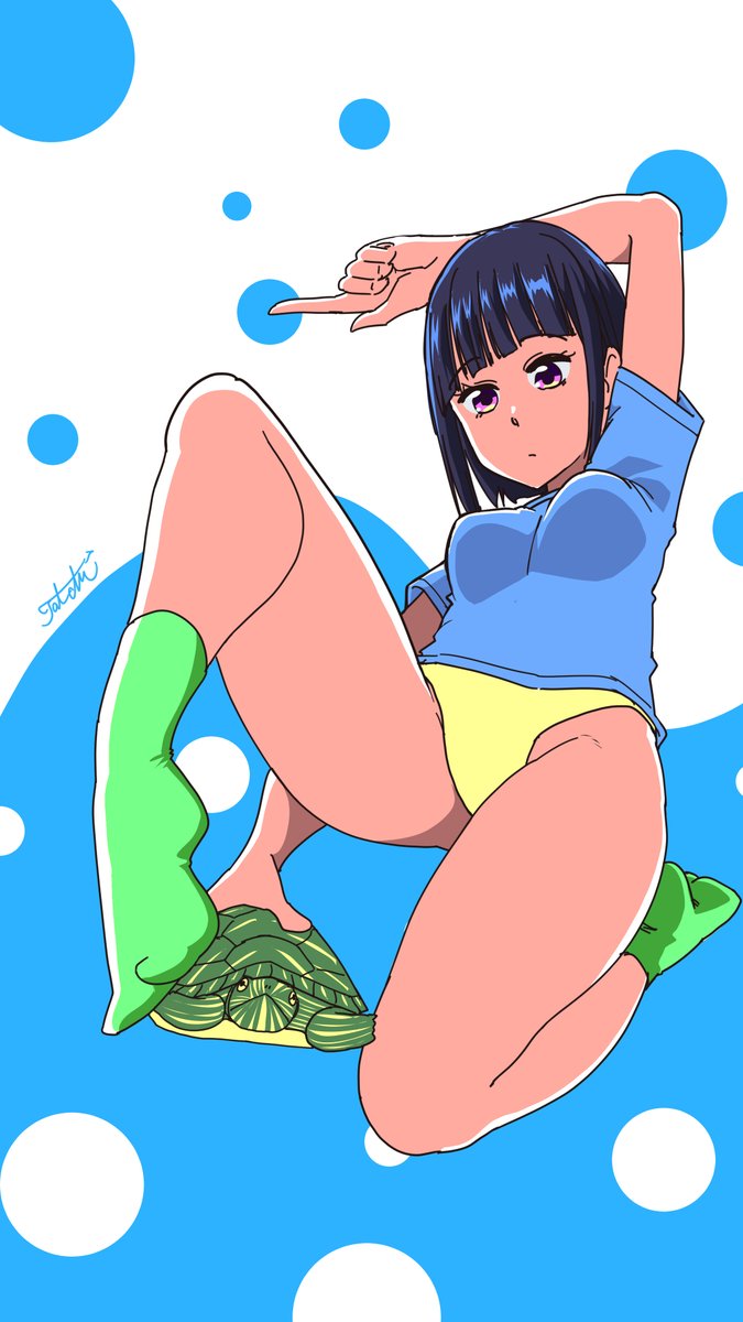 脚の間からミドリガメスルーしてくる女の子が良いとはいえたまには季節感のあるキャラも描いてみよう #TurtleThroughBaby #ミドリガメ #ミシシッピアカミミガメ #異色肌 #落書き