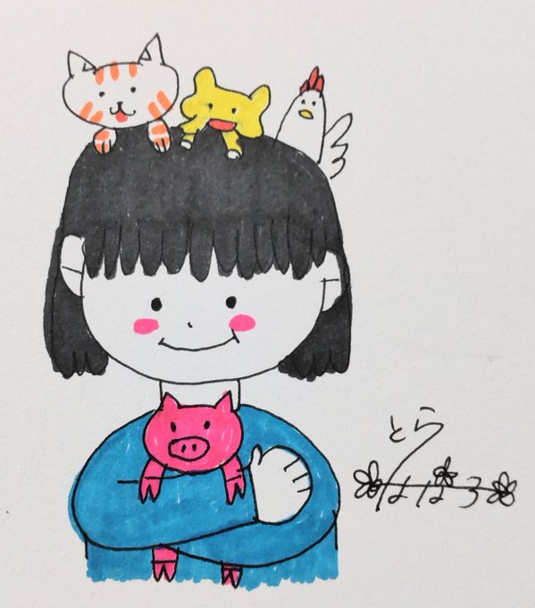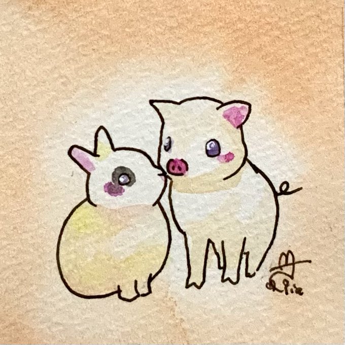 おはようございます!! #ミニの日 #ミニぶたの日 ミニサイズの子達に囲まれました!! 今日も素適な木曜日を〜🤗 #絵描きさんと繫がりたい #みんなで楽しむTwitter展覧会 #イラスト #油性ペン #マッキー画