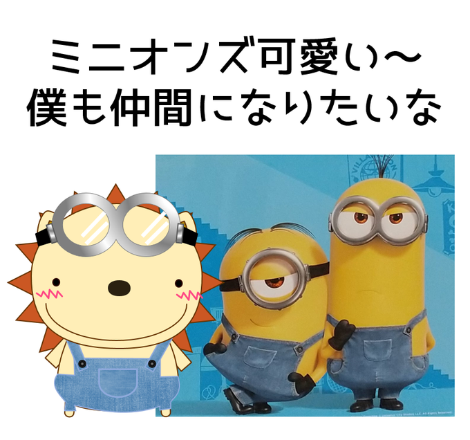 イオンに行くとそこら中にミニオンちゃんが かわいい~ にゃーティンも仮装して一緒にバシャり #イラスト #イラスト好きな人と繋がりたい #ミニオンズ #ミニオンズフィーバー #ゆるキャラ #夏休みはフォロワーさんが増える といいな