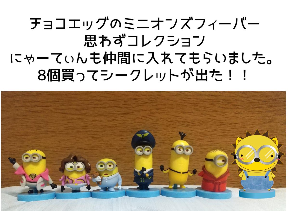 ミニオンズの陽気な所が大好き! 今度はにゃーてぃん、もっとミニオンズよりにして 仲間に入れてもらいました。 チョコエッグのミニオンズフィーバーのシークレットが出ました #ゆるキャラ #ゆるい絵 #ミニオンズフィーバー #シークレット #イラスト好きな人と繋がりたい #絵描きさんと繫がりたい