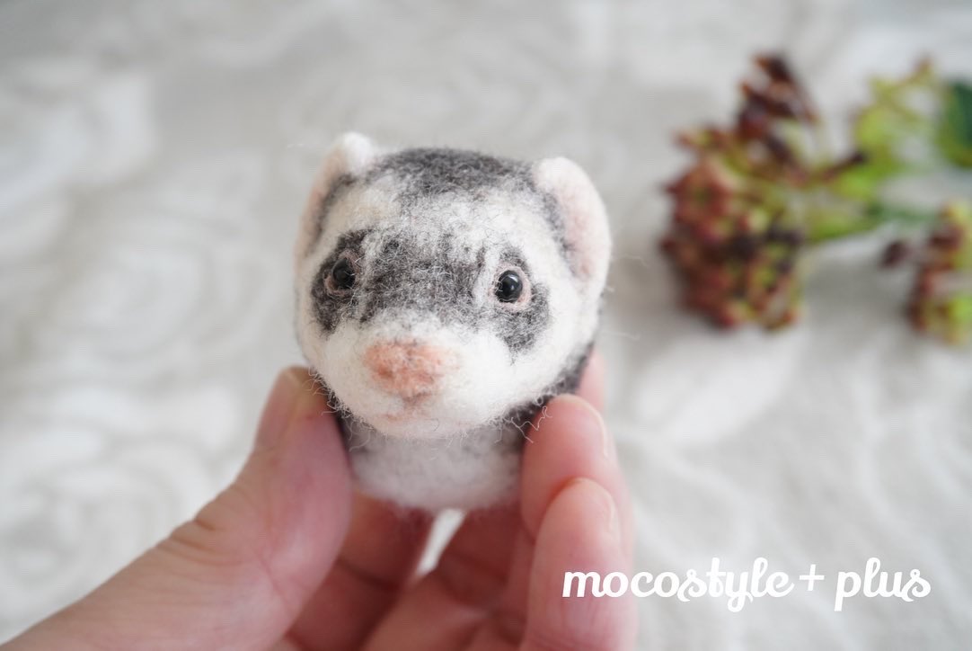 シエルくん単独の写真が続いたので、今度はロワくん。 おヒゲはシエルくんより少しだけ短め。 #羊毛フェルト #羊毛フェルト作品 #ferret #フェレット #オーダーメイド #うちの子オーダー #ぬいぐるみ #フェレットぬいぐるみ #にぎにぎフェレット #ミニサイズ #ハンドメイド #モコスタイルプラス