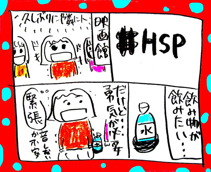 【#映画館:ドリンク持ち込み可】 久しぶりに隣に人・・・ドキドキ緊張。 喉が渇いて、今飲みたい。 だけど手を伸ばすのに勇気が必要。音がしないか心配・不安。飲んでもいい場所でも気をつかう。 #hsp #映画好きと繋がりたい #漫画が読めるハッシュタグ #コミックエッセイ #ミニシアター