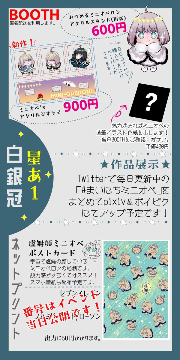 10/30ミニオベwebオンリーのお品書きです!頒布物は野草アクスタ&無配ペーパーで、イベ開始時刻と同時にBOOTHにて頒布開始となります。どうぞよろしくお願いいたします〜っ ●BOOTH店舗 ferrum.booth.pm ●イベントページ pictsquare.net/u4hp7ra8o9vfsu… @minista_obe #ミニスタお品書き
