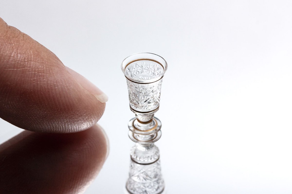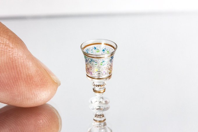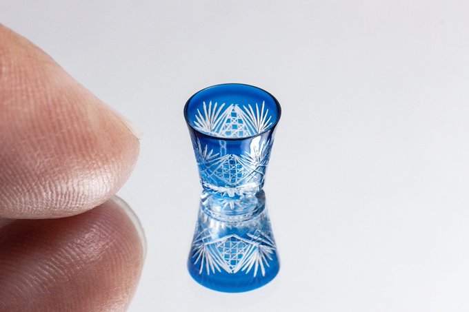 28日まで開催中の #ミニチュアアート展2021 @miniature_art01 今日25日夜19時より販売するのは ベーシックな模様の切子グラス 青から透明のグラデーションカラーに着色し、透明感のある仕上がりにしました ブースは🍎-12 アート展会場はこちら↓ miniatureart.ciao.jp