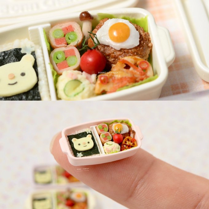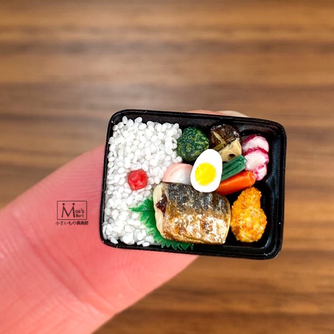 27日21時販売予定の「ミニチュアアート展2021オリジナル弁当セット」を販売ページでプレビュー出来るようにしました。気に入ってくださった方はぜひチェックしてやってください~。未接着仮止め。お弁当のフタは開けられます。 miniatureart.ciao.jpの🐈⬛-8から飛べます #ミニチュアアート展2021