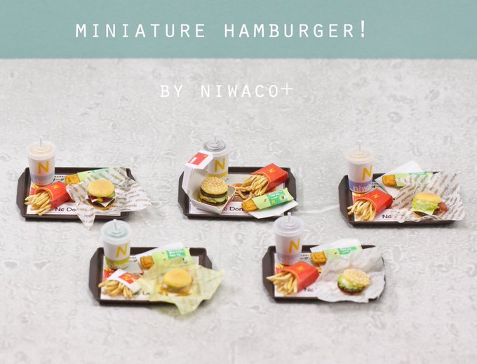 明日の20時30分からminneさんでハンバーガーセットを販売させて頂きます✨ ◻︎レタスとベーコンバーガー ◼︎照りやきバーガー ◻︎フィッシュバーガー ◼︎チーズ2枚バーガー ◻︎ビッグバーガー です。 送料込で12000円とさせて頂きます。 よろしくお願い致します✨ #ミニチュアアート展2021