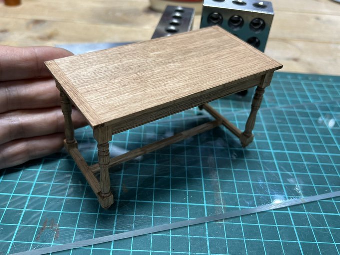 樫の木で作った1/12サイズのアンティーク テーブル完成しました。販売はしませんが来年のミニチュアアート展で展示しようと思います。 #ミニチュアアート展2021 今年はオンラインで開催中 miniatureart.ciao.jp
