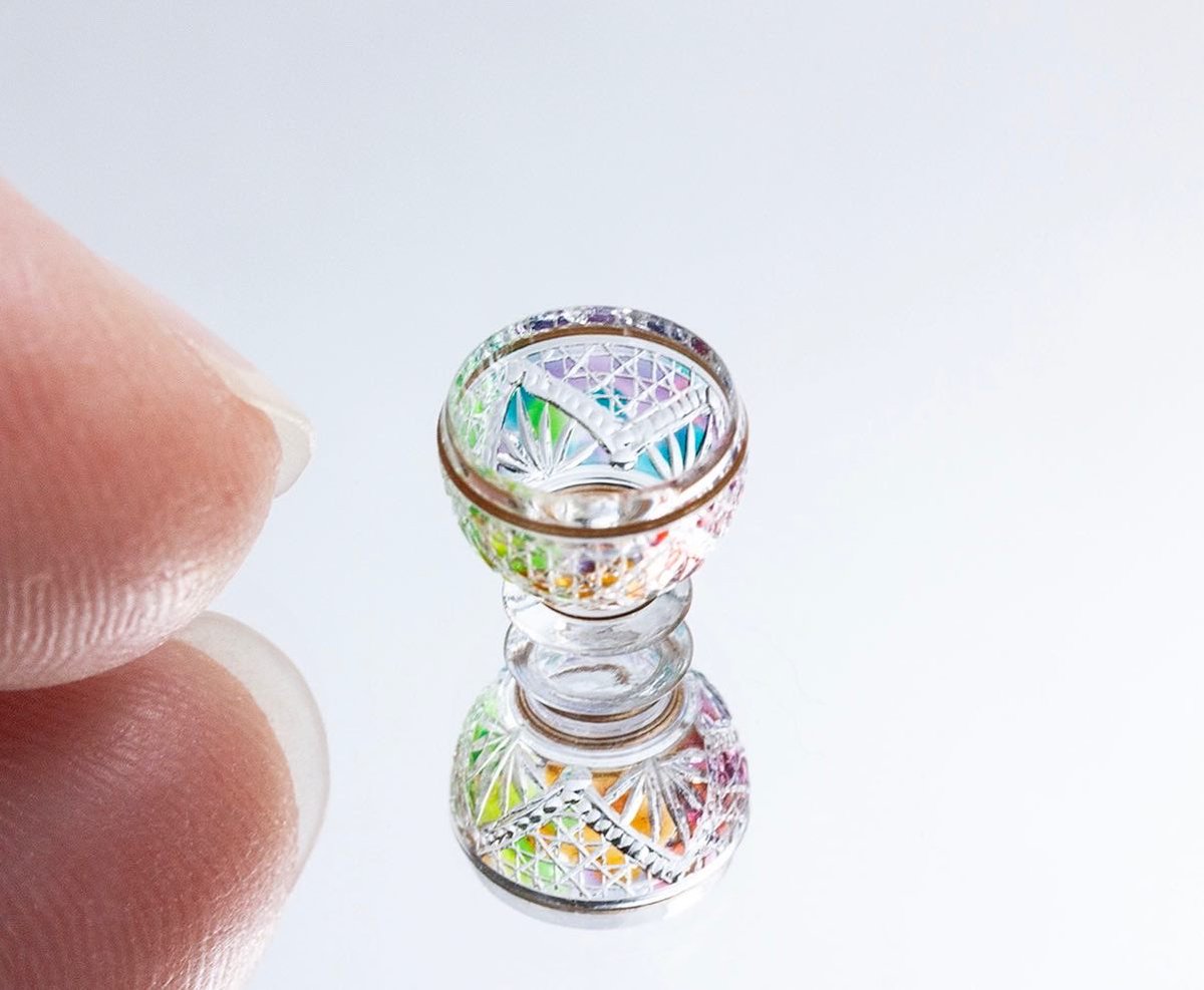 28日まで開催中の #ミニチュアアート展2021 @miniature_art01 今日26日夜19時より販売するのは 透明のカットグラス 金色を差し色で入れています 高さ11㎜ ブースは🍎-12 アート展会場はこちら↓ miniatureart.ciao.jp