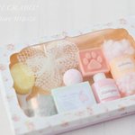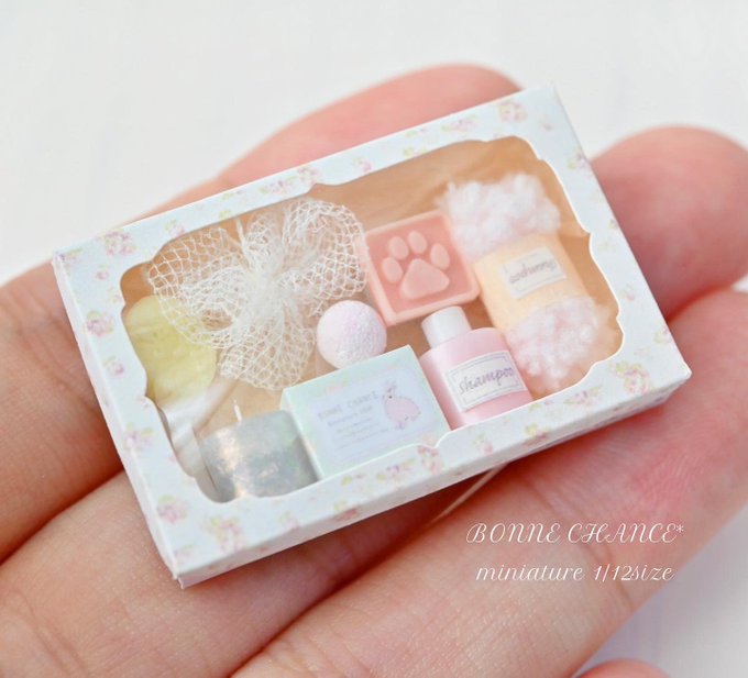 石鹸のギフトを制作しました🫧🛁 ✽ セット内容 ✽ ウォッシュブラシ 泡立てネット キャンドル 肉球せっけん 石鹸の箱 シャンプー ふわふわタオル バスボム 盛り沢山セットになっております🤍 26日27日は #ミニチュアアート展2022 開催日です♡ 晴れるといいなあ🙏🏻✨