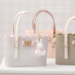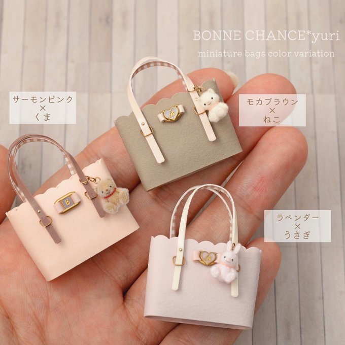 トートバッグのカラーバリエーションは こんな感じになります♡ チャームのどうぶつ達はみんな ふわふわです🧸🐈🐰𓂃𓂂◌ これからコスメとセットにして 行きたいと思います✊🏻♡⸝⸝ #ミニチュアアート展2022 での販売作品となります!