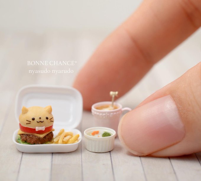 猫のお弁当を作りました🐾🍱 今年は丸型のわっぱ弁当に してみました🥰 猫のお口のω ←この形が 難しすぎました🙀 でもこの口にすると猫らしさが 増すような気がします( > ̫ < )♡ こちらの作品はセットにして #ミニチュアアート展2022 にて販売予定です🐈🌼 #ミニチュア #猫