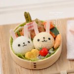 うさぎのわっぱ弁当を作って ケースにディスプレイしました🐇 来年の干支にちなんで うさぎにしました🍱 ✽ セット内容 ✽ ・わっぱ弁当 ・お箸 ・お花の箸置き ・おにぎりのランチバンド ・ランチクロス こちらの作品は #ミニチュアアート展2022 で販売予定です₍ᐢ.ˬ.ᐡ₎ #ミニチュア #お弁当