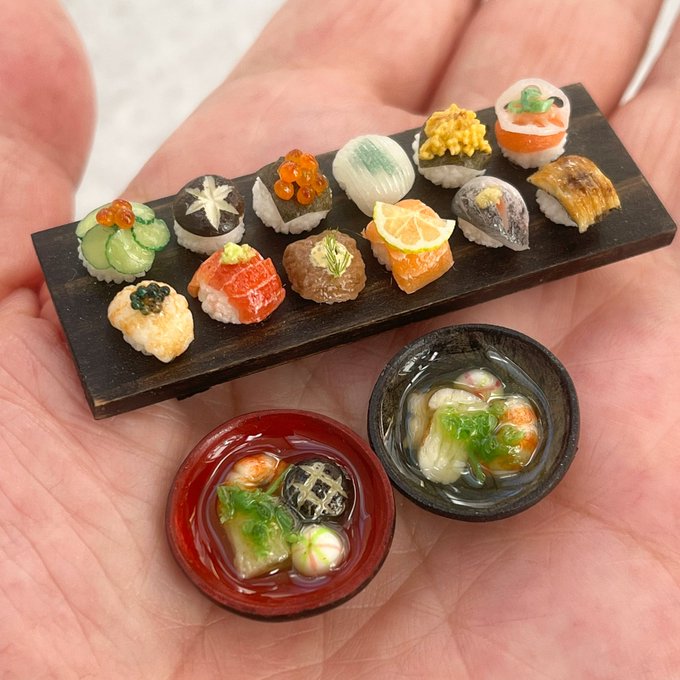 ミニチュア&粘土製の江戸前寿司です☺️ こちらは #ミニチュアアート展2022 にて 販売させていただきます♪ 【制作日記】 bread-magic.jugem.jp/?eid=278 #ミニチュア #ミニチュアフード