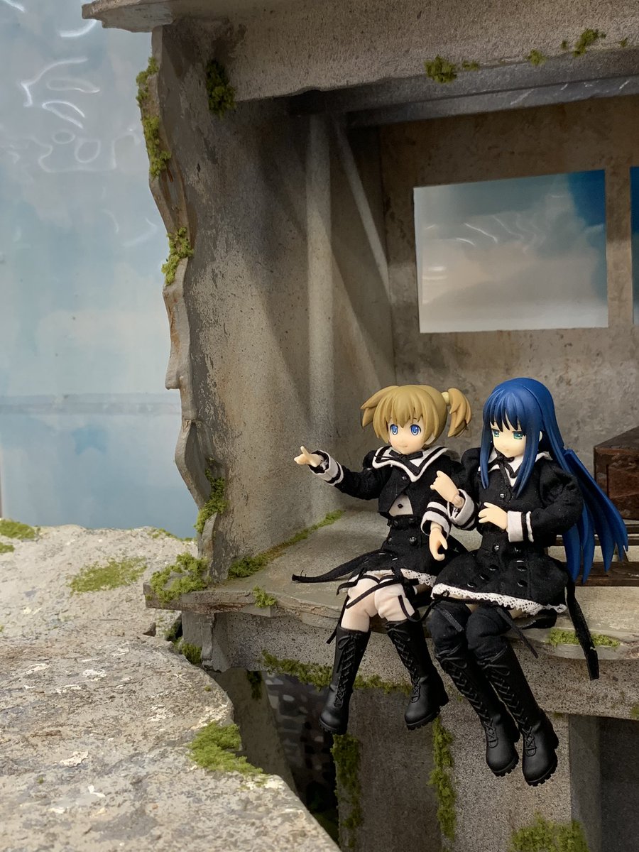 今日も元気に琶月ちゃん こうやって荒野とか廃墟に立たせるだけで電撃の連載の立ち絵っぽくなるのではという案。 なかなか良いんで無いの? #アサルトリリィ #アサルトリリィドール部 #ミニチュアスタジオ
