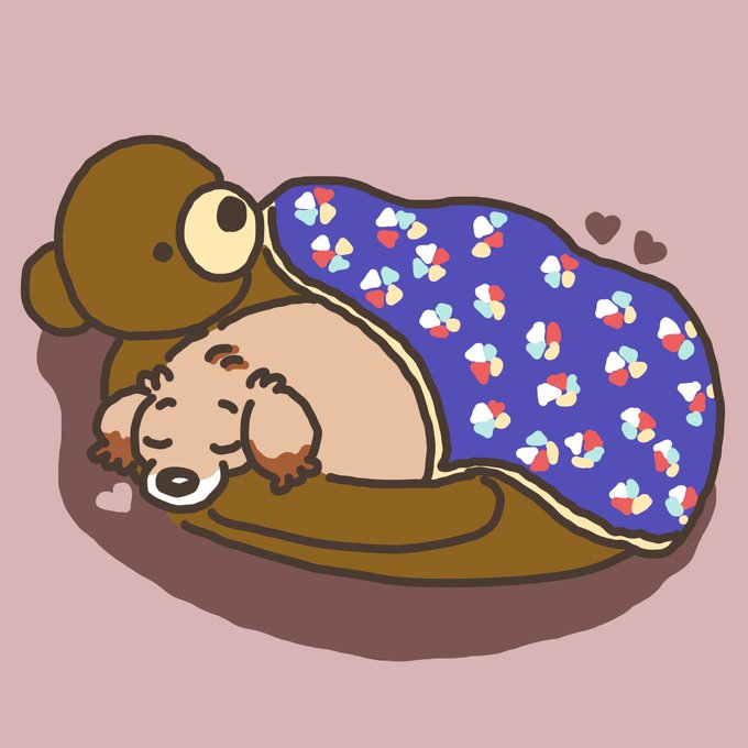 クマちゃんベッドで眠れる幸せ💕 #ミニチュアダックスフンド #イラスト #クマちゃんベッド #洗濯された時は #もう一緒に寝れないかと思ったけど #また一緒に寝れたね #足元良くみたら #蹴ってる