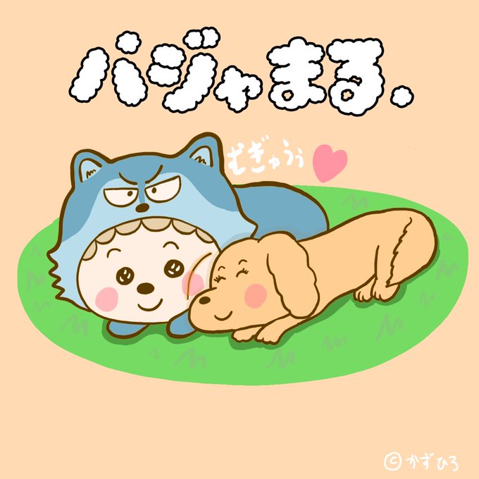 パジャまる。『わんちゃんが顔をむぎゅうぅってしてくれた😊🐶ぼくもきみがすき❤️』 #イラスト #イラスト好きと繋がりたい #絵 #絵描きさんと繋がりたい #絵柄が好みって人にフォローされたい #ゆるい絵 #ゆるいイラスト #ゆるキャラ #夢 #子供 #犬 #ミニチュアダックス #どうぶつ