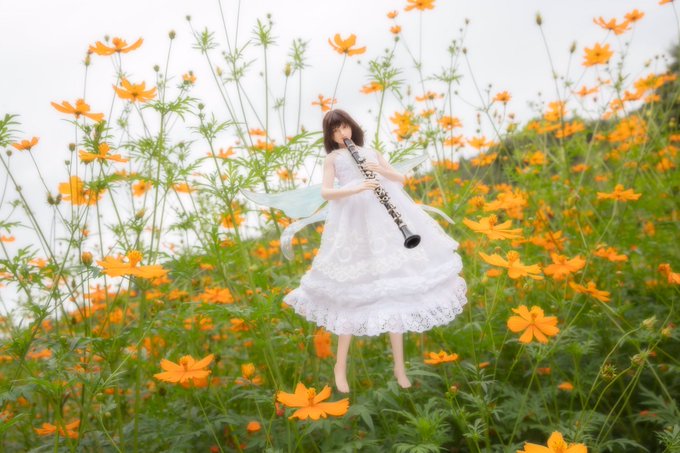 #今夜のドール撮影120分一本勝負 今夜のお題は【あげる】〜過去〜 足を高くあげてテッセンの花の上で踊る妖精さん。 自宅の庭に現れました😆 #ミニチュアドール #ドールポートレート #妖精 #テッセン