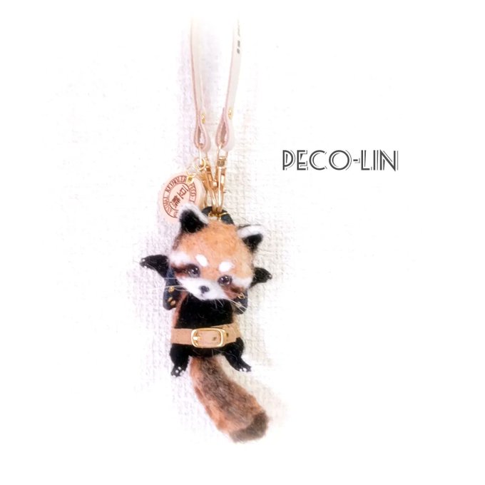 こんにちは🙂 HOLD CAT キーホルダーシリーズ シークレット① レッサーパンダの完成です✨ #パンダ好きな人と繋がりたい #羊毛フェルト #レザークラフト #インテリアパンダ雑貨 #ミニチュアパンダ #羊毛アート #レザーアート