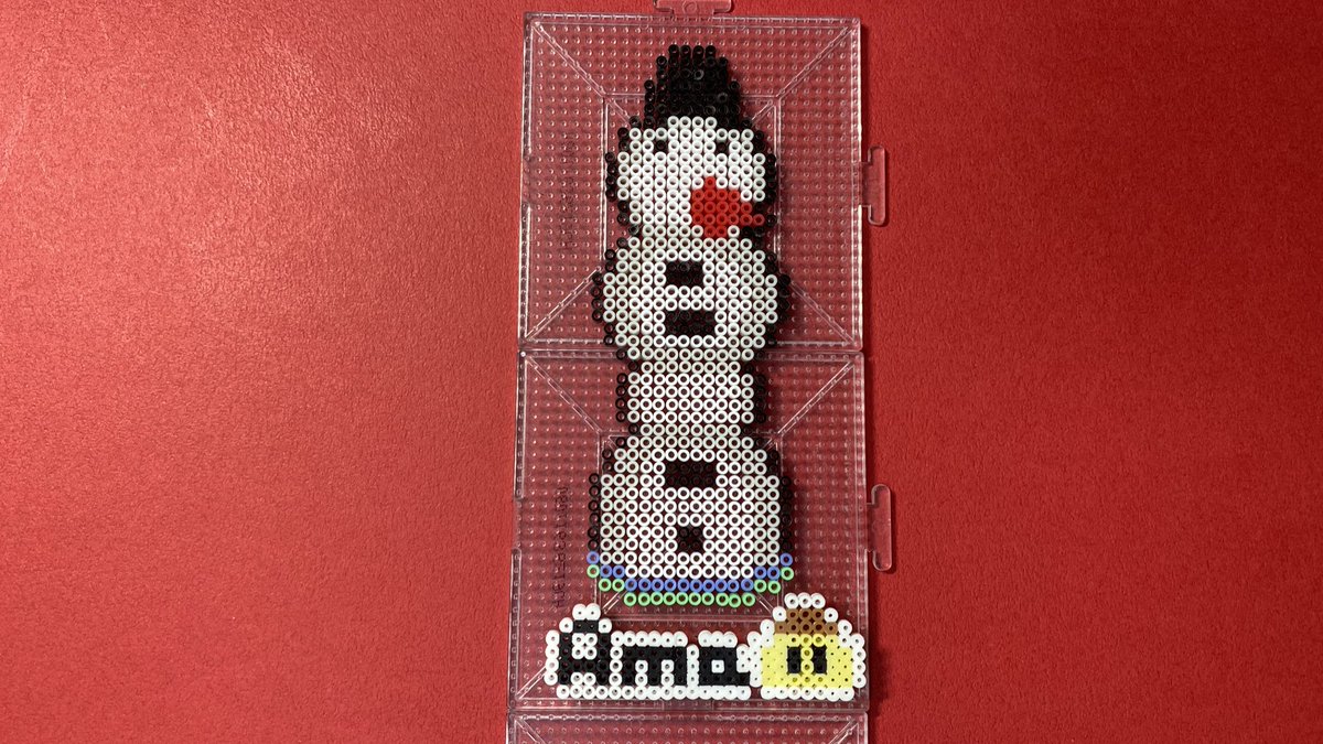 MOTHER2ビーズの旅、マジカント編 雪だるま。「ぼくのことをおぼえててくれてありがとう」 きっと子供の頃に作った雪だるまが、溶けていなくなってしまったことに ネスが寂しさや心残りを感じていて、マジカントにいるのでしょうね、、🤔 #MOTHER2 #EarthBound #アイロンビーズ #ミニフューズビーズ