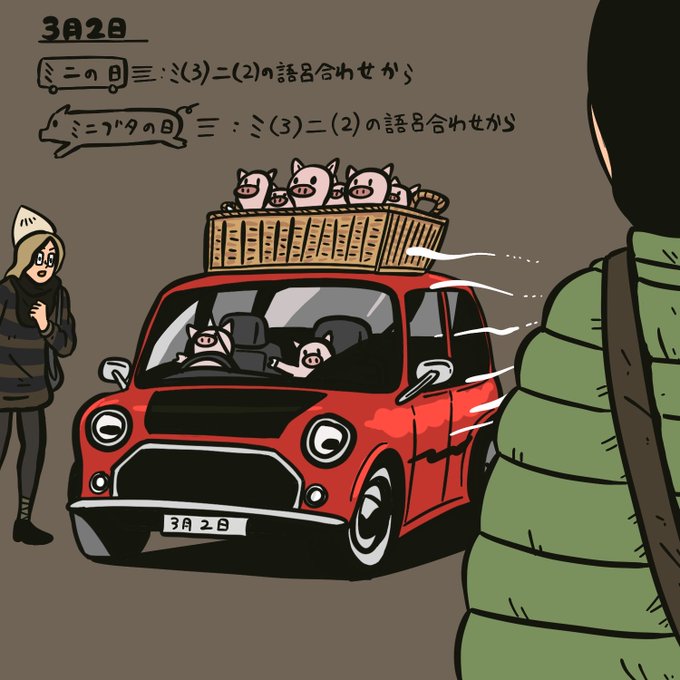 れぉにゃん👑🐱🐷『今日は[ミ(3)ニ(2)ぶたの日 ]💓』『ミニぶたバスがくるまで一休み中🍵』#今日は何の日 #ミニブタの日 #ミニブタ #芸術の輪 #猫 #猫好きさんと繋がりたい #イラスト好きさんと繋がりたい #絵師さんフォロバ100 #フォロバ #ゆるキャラ #ゆるい絵 #漫画が読めるハッシュタグ #バス停