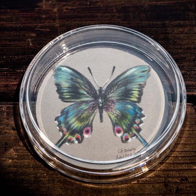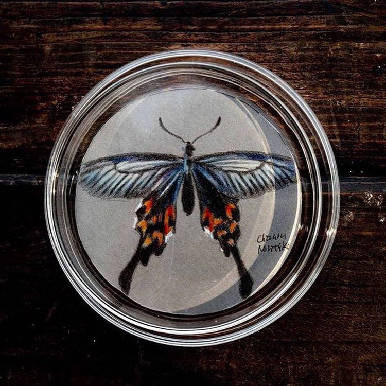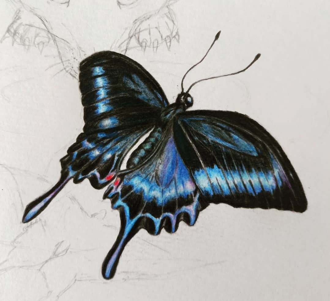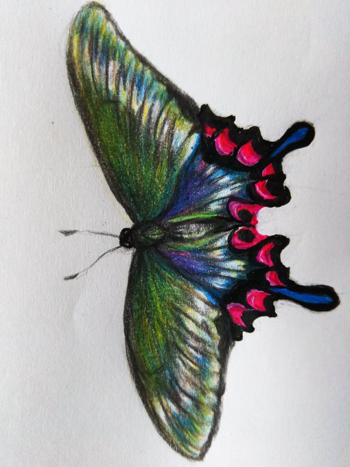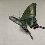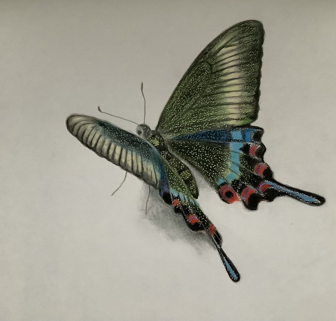 ミヤマカラスアゲハさんと ニシキオオツバメガさんも製作中です✨ 黒い模様を描いていると色鉛筆を握る指にとっても力が入る。すぐに痛くなります(´・ω・`;) それでも作りたいんですよねー😭 #ニシキオオツバメガ #ミヤマカラスアゲハ #蛾 #蝶 #手描き #色鉛筆