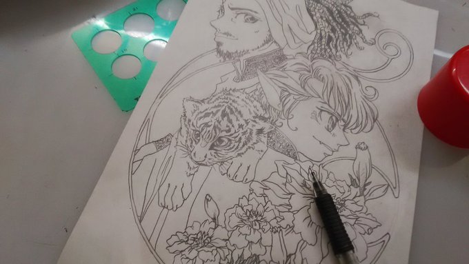 いい加減、 何か描いとかないとホントに春まで『描かない』かも知れない・・・っちゅう危機感(笑)があったので(^_^;)、 今年の《干支》を描こうとしたら、 こんなんになりました(>_<)💦 2022年、初描きですぅ✨ #アナログ手描き #イラスト #下描き #ミュシャ風イラスト #珍しいファンタジーで
