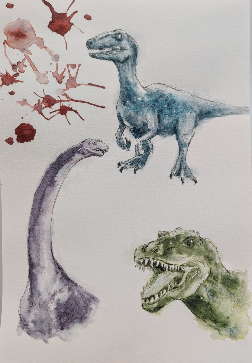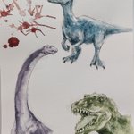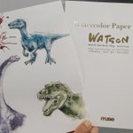 #ミューズ絵画展2022夏 いつもと違う描き方で分離色恐竜を試し書き。 ホワイトワトソン、ミリペンもひっかかりにくく、水をたくさん使っても負けない紙でした。 分離の仕方は、綺麗にエッジが出る気がする… それぞれ手持ちの、単色の分離色で描きました🦖