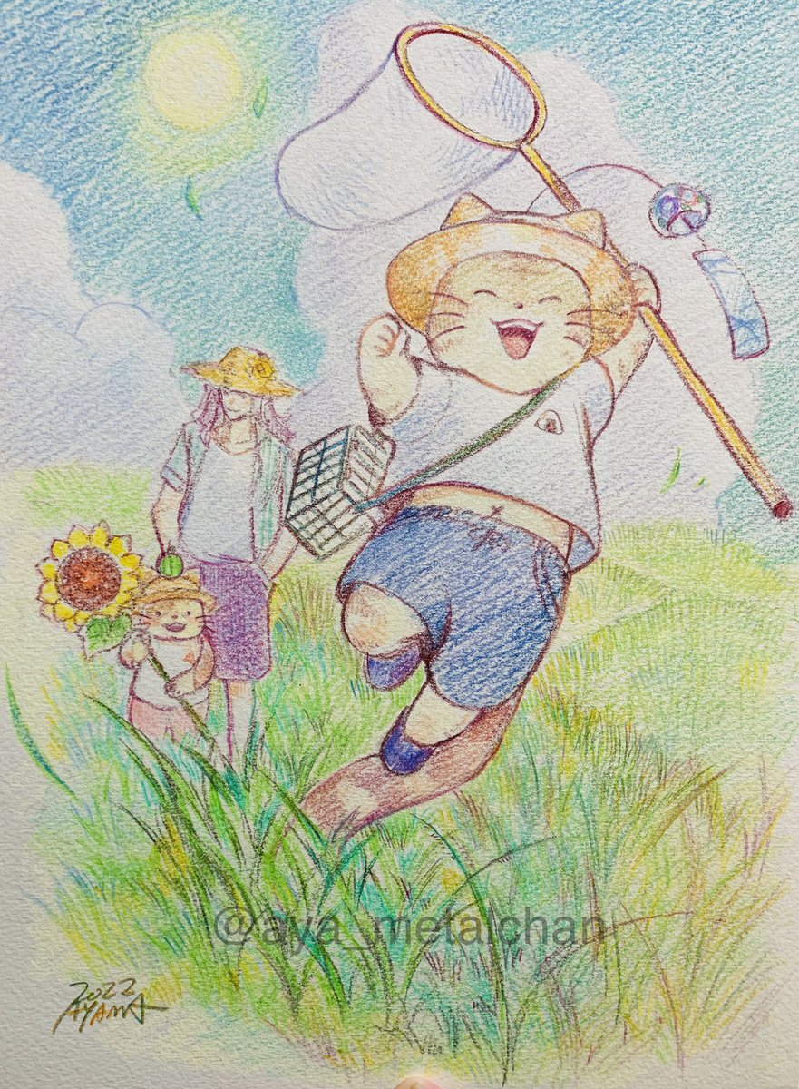 「夏休み満喫!」 いつもお世話になっているワトソン紙に色鉛筆で描きました。 生成色がイラストにあたたかみを与えてくれるので気に入っています。😊 #色鉛筆 #イラスト #ミューズ絵画展2022夏