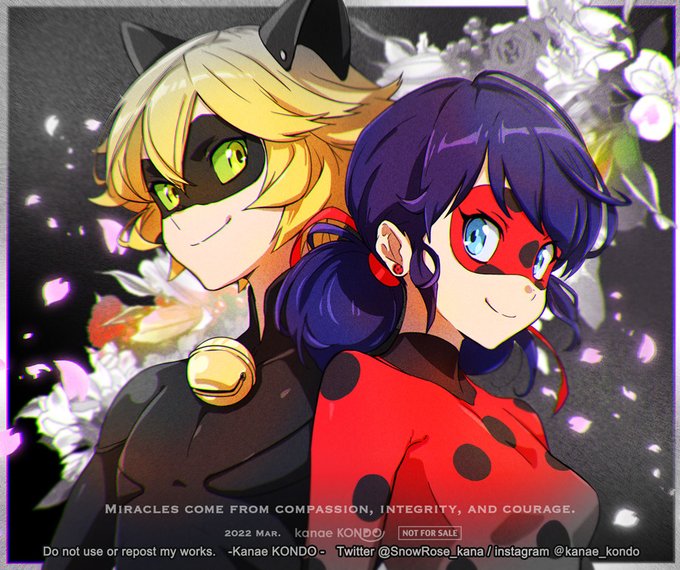 \ #FANART / #MiraculousLadybug #ミラキュラス トーマスさんとウィニーさんにプレゼントする為に作る非売品グッズ用イラスト🌸 そして今日3月4日は結婚記念日🌸 夫&りき、いつもありがとう💐  ̄ ̄∨ ̄ ̄ ̄ ∧_∧ ( =´°`) _( U 🐱U 'ー'ー'