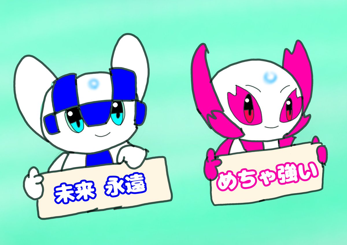 BONJOUR🇫🇷! こんにちは🇯🇵! 你好🇨🇳! #Olympics #Paris2024 #Tokyo2020 #Phryge #Miraitowa #ミライトワ #ミラソメ存続希望 #OlympicMascots #OlympicMascotsForeverTogether Sensen and me: #OC #OriginalCharacter #Mascot #Fanart #Painting