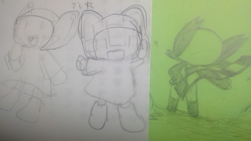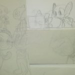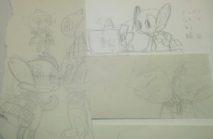 スキャンする前の下書き、ラフなど。 完成品と、ここに上げたものとは異なるトコが、 あったりします。 (一枚目右上) #今月描いた絵を晒そう #ミラソメすいようび #ミライトワ💙 #ソメイティ🌸 #ミラソメ存続希望