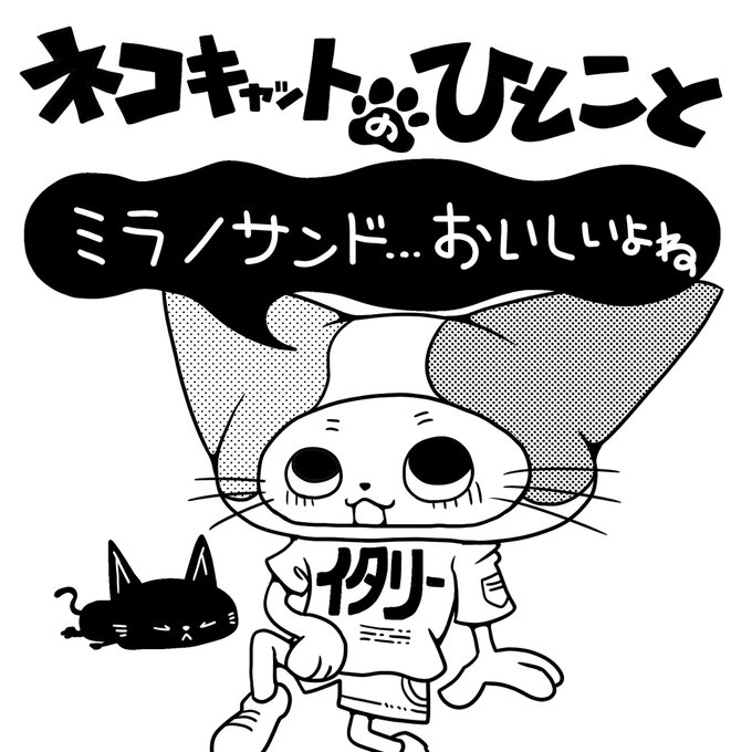 イタリアのミラノにも「ミラノサンド」はあるのかな?ランチで入ったドトールでそんな事を思った土曜日。お疲れ様。 #ネコキャット #猫と仕事とドトールと #ミラノサンド #イラスト #illustration