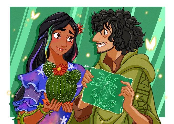 人生の夢が叶うって...⏳&🌵 ブルーノとイサベラの二人組も良いですね。endの後で昔イサベラの未来を描いた石板を見せて⏳が夢が叶って良かったねとか言ってたら最高ですね。 #ミラベルと魔法だらけの家 #ディズニー #ディズニープラス #ミラベル #ディズニーイラスト