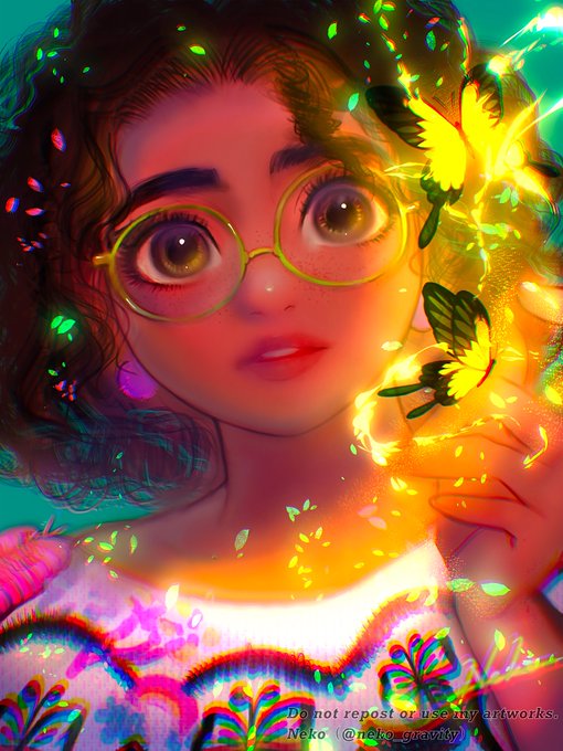 ミラベルお誕生日おめでとう!✨🦋✨ イラストは、アルフォンス・ミュシャ作品「パリ万国博覧会オーストリア館オフィシャル・ガイド表紙」オマージュ #ミラベル・マドリガル誕生祭2022 #Encanto #Mirabel #ミラベル #mirabelmadrigal #ミラベルと魔法だらけの家 #Disney #ディズニー
