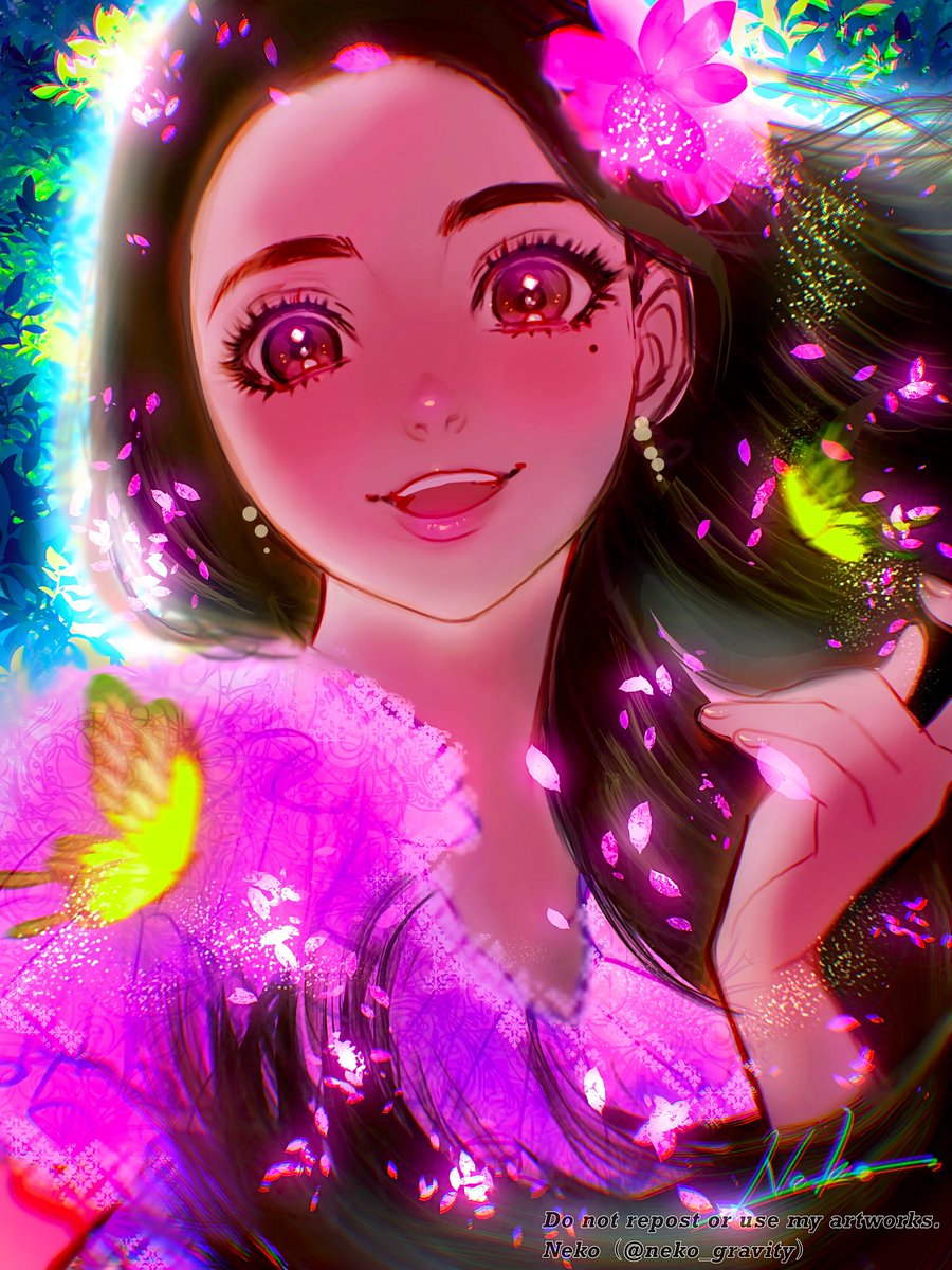 ミラベル観た記念🦋アルフォンス・ミュシャ作「パリ万国博覧会オーストリア館オフィシャル・ガイド表紙」オマージュ。 たまたま描いた蝶の模様がミラベルに蝶の羽が生えたみたいになって可愛くなった!🦋✨ #ミラベルと魔法だらけの家 #ミラベル #ディズニー #mirabel #Disney #DisneyEncanto #encanto