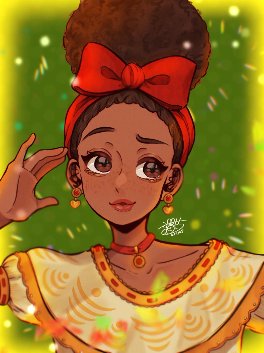 今回はミュシャオマージュではなく厚塗り。お婆ちゃんは黒ショールお気に入りそうだったから、きっと保存用・観賞用・普段使い用で同じショール5~6枚持ってるはずだから、ミラベルに素敵な刺繍して貰っても大丈夫✨#encanto #encantomovie #ミラベルと魔法だらけの家 #ミラベル #ディズニー #Disney