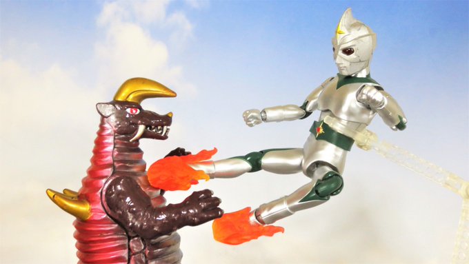 ミラーマン先輩に厳重注意を受けるリピア消耗時Ver.!? ← 色被りと、緑=弱いという悪いイメージがつくことに抗議してるらしい😆 #ミラーマン #シン・ウルトラマン #シンウルトラマン #ウルトラアクションフィギュア #HAF #エヴォリューショントイ #ウルトラマン #オモ写