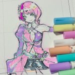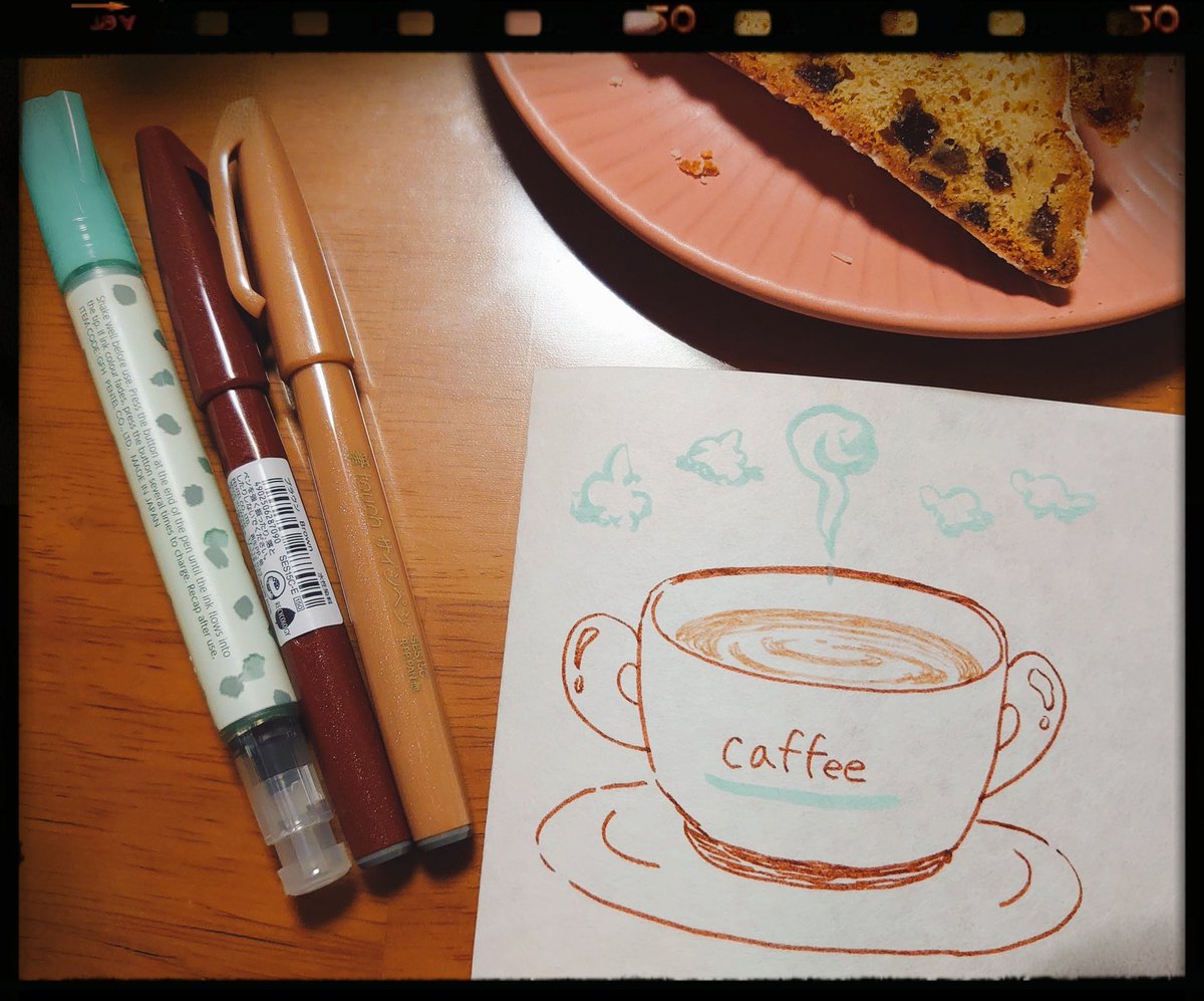 と言うわけで、#pentelday 2022のワークショップ用にいただいた #ミルキーブラッシュ 2色を使い、黒色紙(136mm ×121mm)に絵を描いてみた。マットな顔料インクの筆ペンで、ここまでスーッと描けるとは、その進化にビックリ感動。落款風のサインは #金の穂 で。 #ぺんてる #ぺんてる筆 #筆ペン