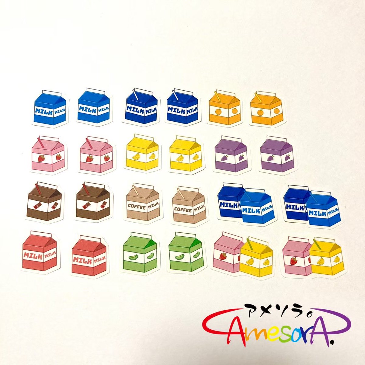 ✨フレークシール販売中✨ 【ミルク!ミルク!】 →牛乳やいちごミルク、バナナミルクのパックです🥛 *minne* minne.com/items/33011141 *BOOTH* 32x3b.booth.pm/items/3972264 #minne #minneで販売中 #booth_pm #BOOTH #イラスト #シール #オリジナル #ミルク