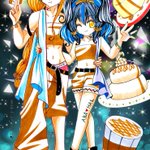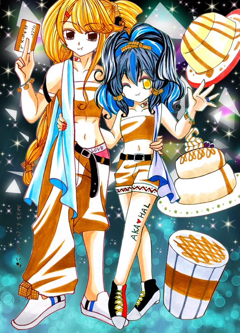 🎀二次会🎀 マイホームにて🏠 2人で作ったキャラメルスイーツをゲストにおもてなし🎵 お菓子食べながらキャラメルカラーの衣装に身を包みリラックスモードな2人💖(暁着崩し) #ミルクキャラメルの日 #幸せのその先に2023 #にゃんこのアカハル暴走部屋2023 #イラスト #二次創作 #BL